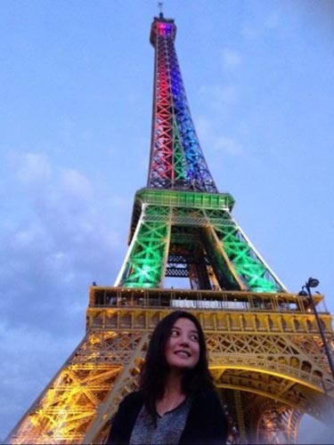 赵薇埃菲尔铁塔前留影