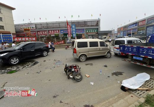 中午1点前后,107国道东侧润德五金城门口发生一起三车连撞事故,事故造成一骑电动车男子当场身亡,电动车上一名五、六岁女孩重伤。事故中,两辆追尾的面包车司机受伤,另一辆现代越野车前脸受损严重,气囊打开……裕华交警大队事故科警员正在现场调查。目前死者身体覆盖白单,身份未明……燕赵都市网记者郭天力陈建宇发自车祸现场